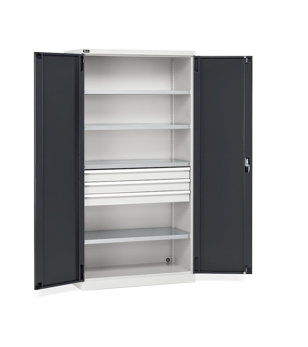 Armadio Con 2 Ante, 4 Ripiani, 3 Cassetti, L1023 X P555 X H2000 Mm, Perfom14004