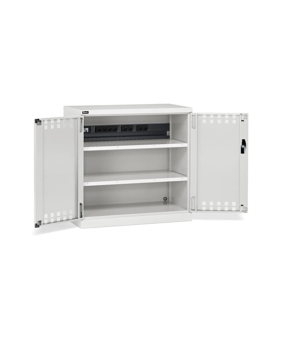L’armadio per la ricarica Perfom consente di avere a disposizione una fonte di energia per la carica di apparecchiature a batteria. Il foro passacavi presente in prossimità del fondo dell’armadio permette l’ingresso del cavo Wieland collegato all’interruttore magnetotermico e alle multiprese installate sulla canaletta elettrica.