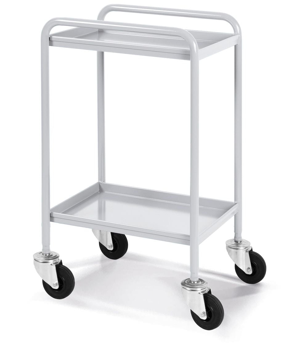 La struttura leggera e robusta e le 4 ruote in gomma standard ne facilitano la movimentazione, mentre i diversi piani sono dotati di bordo rialzato per evitare la caduta del materiale durante il trasporto.