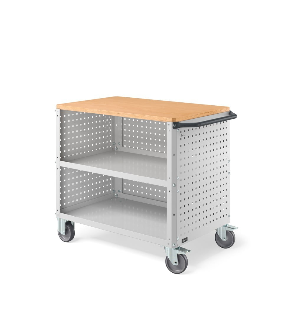 Carrello Clever Large Con Piano In Legno, Piano In Acciaio Aggiuntivo, Pannelli Forati E Pannello Forato Posteriore Clever1015/1016