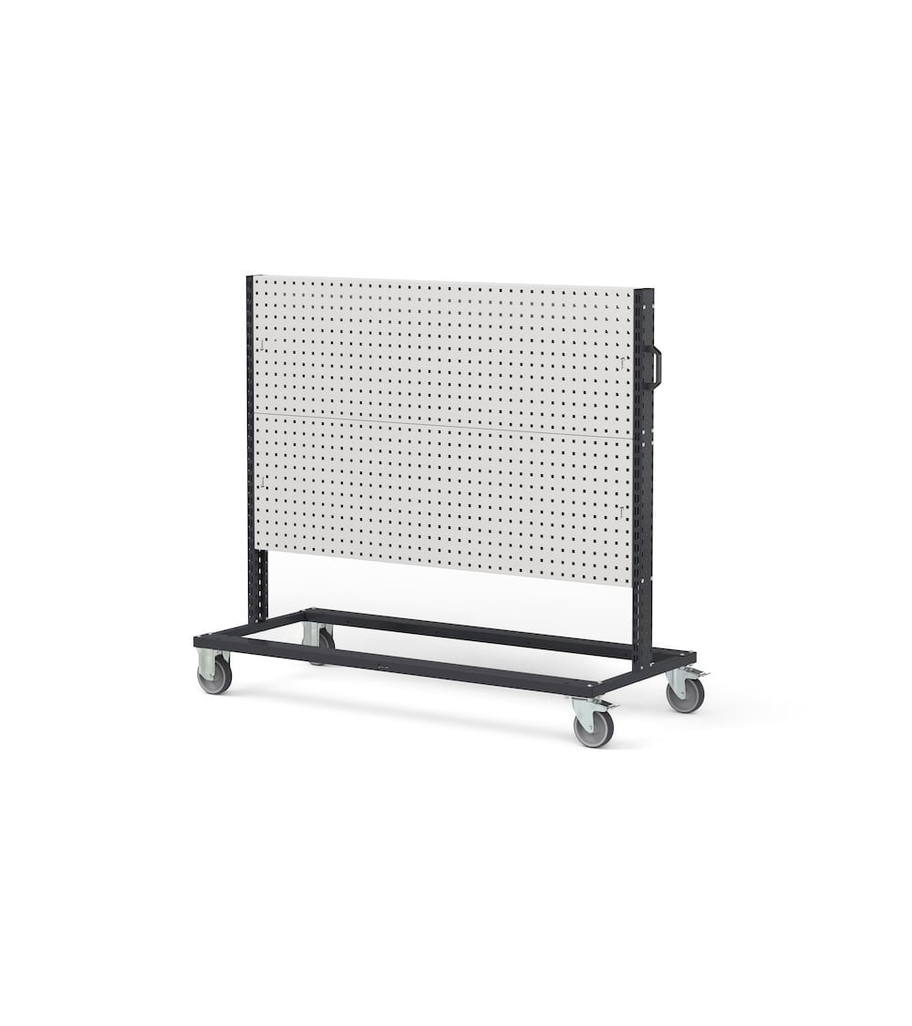 Il carrello con 4 pannelli forati Bin Cart rappresenta la base su cui aggiungere accessori e ganci per creare un carrello portattrezzi e avere così a portata di mano tutto il necessario per effettuare lavorazioni. In alternativa è possibile anche realizzare carrelli lean production andando ad aggiungere sistemi come contenitori a bocca di lupo e bracci estensibili per l’organizzazione dei kit utilizzati nelle catene di assemblaggio. La maniglia laterale e le ruote in gomma antitraccia sintetica rendono la movimentazione più rapida e semplice.