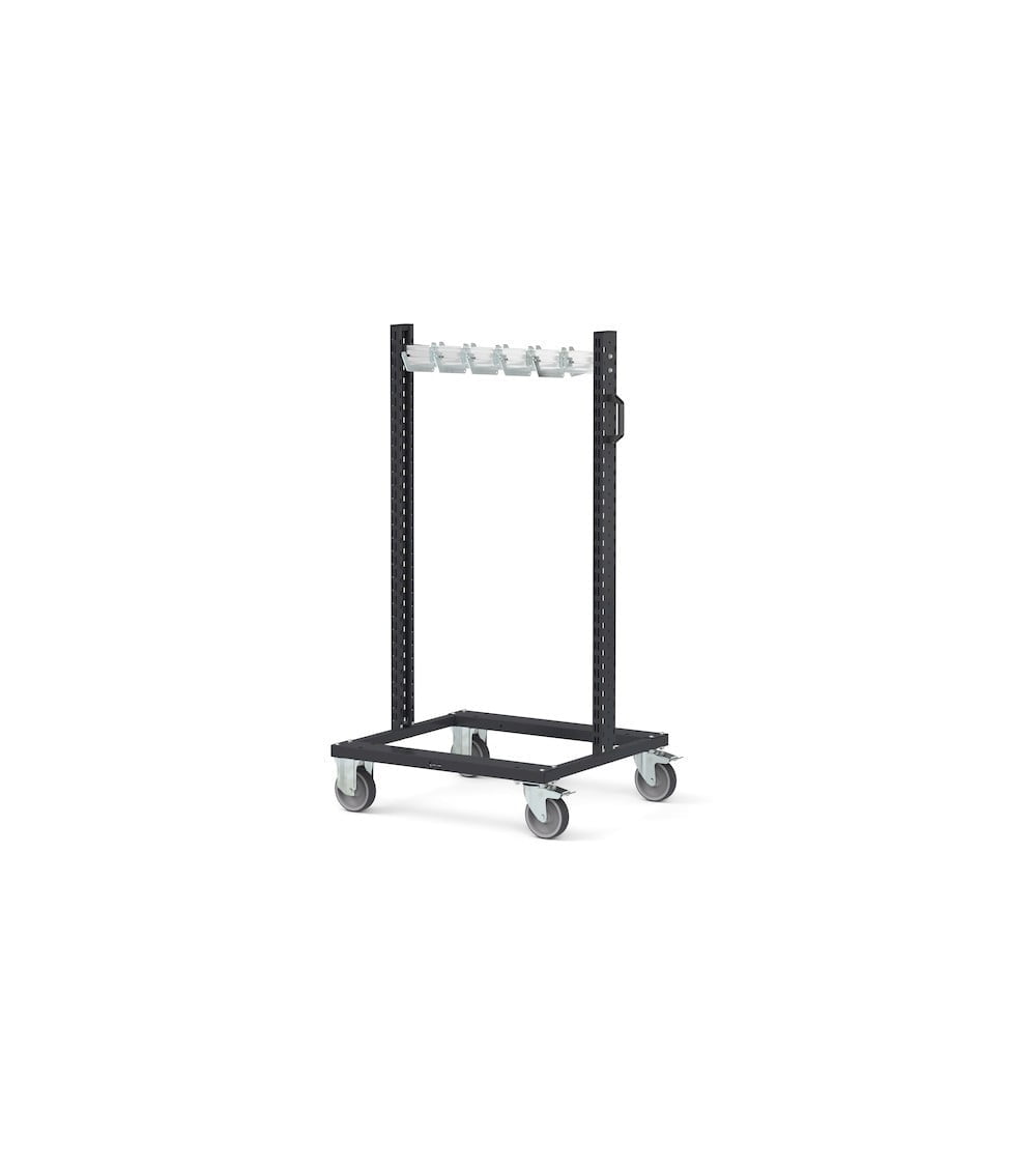 Il carrello per imbracature permette di custodire in ordine imbracature, cavi, prolunghe e funi che solitamente sono riposti in azienda o in officina alla rinfusa, ingrovigliati o con nodi. Presenta una serie di ganci installati su un profilo in alluminio la cui posizione è facilmente regolabile grazie al fissaggio composto da inserto con vite. Il carrello Bin Cart è movimentabile grazie alla pratica maniglia laterale e al set di ruote in gomma antitraccia sintetica.