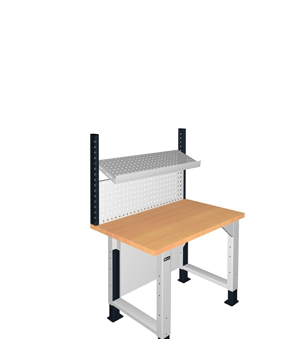 Un banco regolabile in altezza consente di creare una postazione di lavoro ergonomica su cui l’operatore può effettuare diverse lavorazioni. La struttura base può essere arricchita con pareti forate, armadi a cassetti o con porte, ruote per avere sempre a portata di mano tutto il necessario per il lavoro quotidiano.